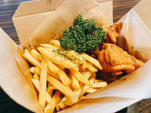 当店向かいの焼肉屋さん「焼きにーくん」様とのコラボにより、「フライドポテト」や「唐揚げ」「おにぎり」など軽食が食べながらゴルフプレイやゴルフ練習ができるようになりました。